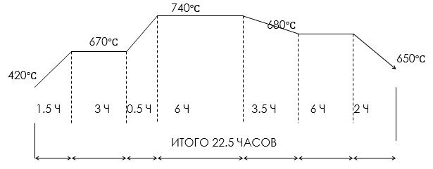 Циклограмма температуры и времени выдержки садки в шахтной/колпаковой печи