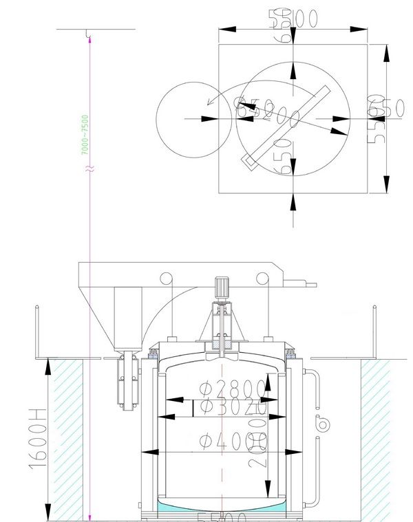 Габариты бунта проволоки: НД = 900 мм, ВД = 500 мм, высота = 150 мм, вес мотка = 150 кг. Диаметр калиброванной проволоки: Ø 2.7 мм/ Ø3.2 мм. Тип печи: шахтного типа с подвесным манипулятором. (CCP-2820). Исходный материал: низкоуглеродистая сталь марки С1018, С1022. Наружный диаметр бунта проволоки: OD 850 мм (7 якорей). Производительность: приблиз. 14-15 тонн/садка. (макс. загрузка). Производительность (месяц): приблиз. 350~420 тонн/печь. Время цикла отжига: в течение 24-28 часов (включает нагрев, выдержку температуры и охлаждение, цикл термообработки контролируется программатором, ПЛК). Мощность: 3-фазы 380В, 280 кВт (макс. потребляемая мощность 320 кВт). Температура: 650℃~730℃, макс. 760℃. Габариты печи: корпус печи: ψ3800 мм x 2800 мм (В), размер садки: ψ2800 мм x 2000 мм (В). Защитная атмосфера: азот с расходомером. Обогащенный газ: пропан с расходомером. Контроллер температуры с панелью управления. Подъем/опускание крышки печи приводится в действие при помощи пневматического цилиндра от компрессора.