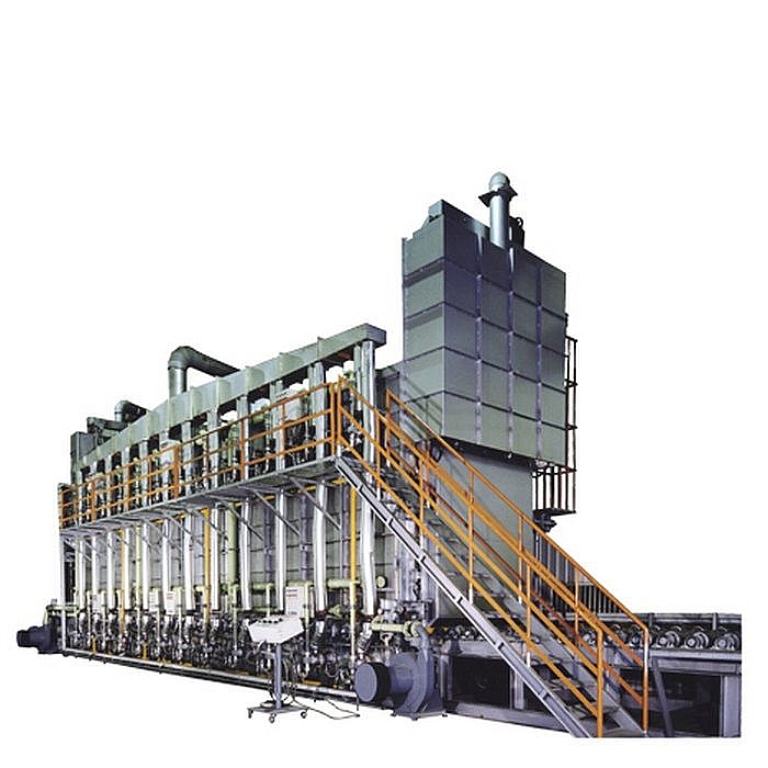 Проходные садочные печи для сфероидного отжига проволоки в бунтах состоят из камеры отжига проходного типа. Роликовый конвейер выполняет функцию подачи/выгрузки и сквозной транспортировки бунтов проволоки в печи. Печь оборудована платформой для технического обслуживания и вытяжной вентиляцией для отвода и удаления выхлопов и других продуктов горения. Управление - автоматическое, программируемым логическим контролером, панелью управления HMI. Система обеспечения безопасности: световая и звуковая индикация событий и возникающих неисправностей, датчики температуры, контроллер ПИД и SSR, датчики углерода, кислорода, термопары. Кривая процесса термообработки контролируемая с отображением событий на дисплее управления и записью данных.