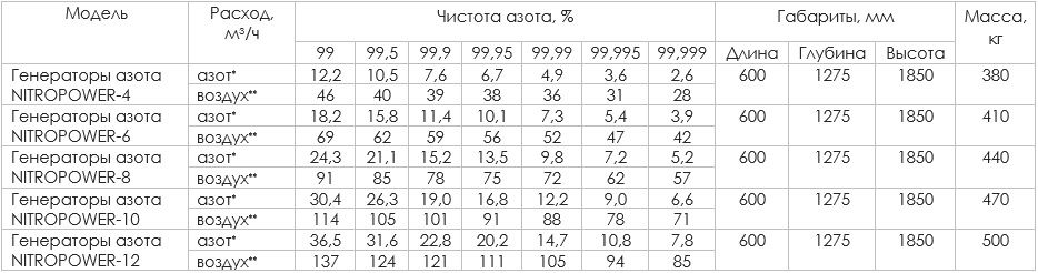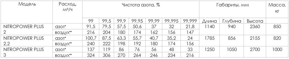 Модельный ряд генераторов азота NITROPOWER PLUS