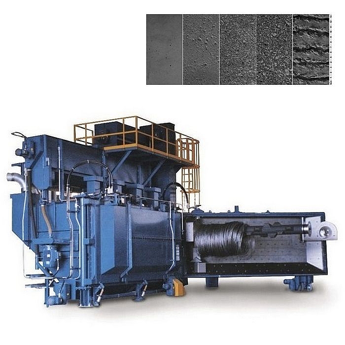 Пескоструйный окалиноломатель применяется для механического удаления окалины с поверхности проволоки из низкоуглеродистой, высокоуглеродистой стали, оцинкованной стали, проволоки из нержавеющей стали, шарикоподшипниковой стали. Пескоструйный окалиноломатель является экологически чистой альтернативой технологии кислотного травления проволоки. Оборудование помогает сэкономить на эксплуатационных расходах и не занимает много рабочего пространства. Бунты проволоки навешиваются на металлический сердечник оборудования для пескоструйной очистки проволоки от окалины. Во время пескоструйной обработки сердечник вращает моток проволоки, обеспечивает равномерную очистку поверхности катанки. Оборудование поставляется с одной или двумя загрузочными секциями. Оборудование с двумя загрузочными секциями на два мотка проволоки отличается повышенной производительностью и обеспечивает снятие окалины для двух бунтов проволоки в непрерывном режиме. Грузоподёмность металлического сердечника составляет до 3000 кг. Цикл пескоструйной обработки - 5 - 15 минут в зависимости от диаметра исходного материала.