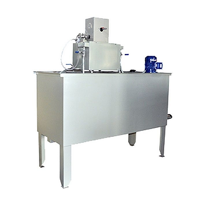 Резервуар установки изготовлен из нерж. стали марки SUS304, плиты толщиной 3.0 мм. Размер резервуара: Д1800 х Ш750 х В550 мм. Включает механизм разделения масла и воды и циркуляционный насос из нерж. стали мощностью ½ л.с.; мембранный насос из ПП.