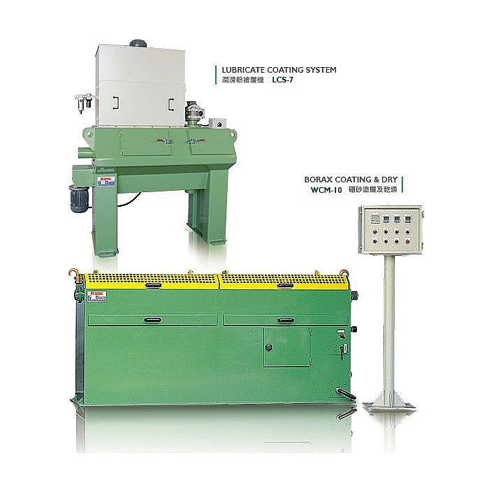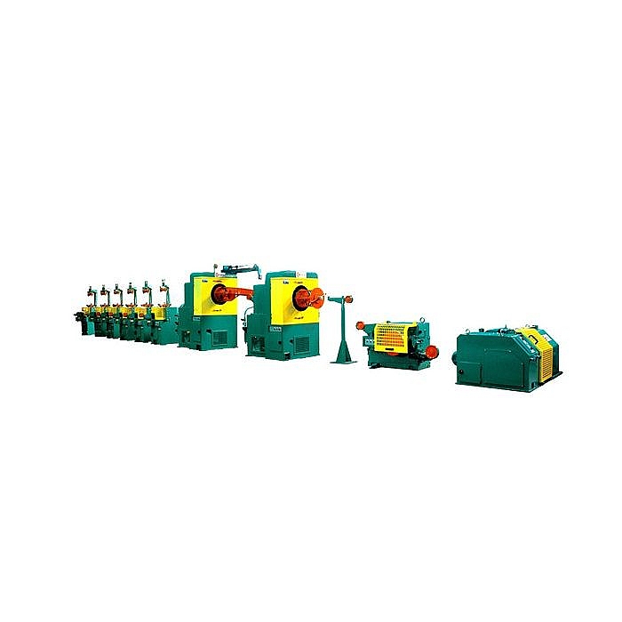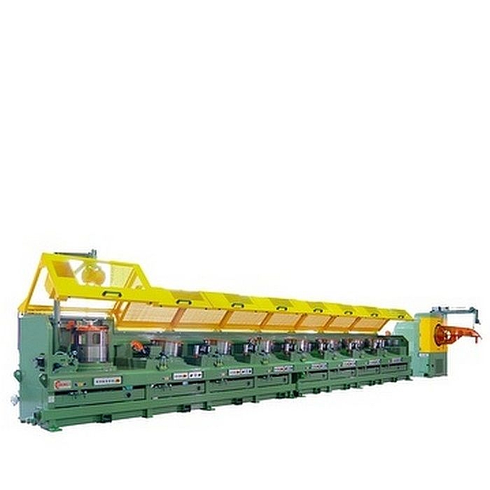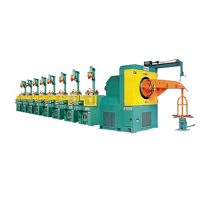 Волочильные станы прямоточного типа для волочения низкоуглеродистой, высокоуглеродистой, легированной, нержавеющей проволоки. Первый блок накопительного типа, блоки со второго до последнего — с системой вертикального съема проволоки, контроль скорости — по натяжению. Двигатели, частотные преобразователи, ПЛК, интерфейс «человек-машина» (HMI) — «Mitsubishi или Siemens». Возможна комплектация линией для механического удаления окалины (секция перегиба, секция тонкой очистки стальными щетками, секция покрытия подсмазочным веществом), размоточными устройствами в т.ч. пневматическими, механизированными, намоточными устройствами (розетта, катушка), острильными аппаратами, стыкосварочными аппаратами, другими дополнительными устройствами. Скорость волочения до 1200 м/мин.