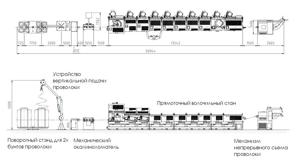ЛИНИЯ ВОЛОЧЕНИЯ ПРОВОЛОКИ ПОД ВЫСАДКУ ВИНТОВ, САМОРЕЗОВ И ГВОЗДЕЙ