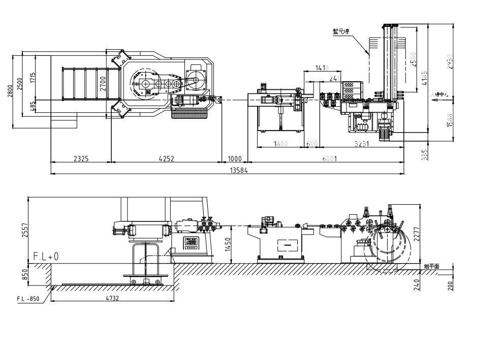 Обеспечивает процесс подачи проволоки – правление проволоки. Диаметр на входе: Ø32.0 мм – Ø20.0 мм. Материал: низкоуглеродистая сталь / легированная сталь. Двигатель & привод: 30 л.с. двигатель переменного тока, марки ТЕСО. 30 л.с. привод, марки Rhymebus. Рихтовочное устройство с гидравлической системой. Узел правления оснащен правильными валками х 1 комплект. Правильные валки контролируются гидравлической системой. Оборудование останавливается автоматически при образовании петель. Функция аварийной остановки. Размотчик оснащен шкафом электрического управления.