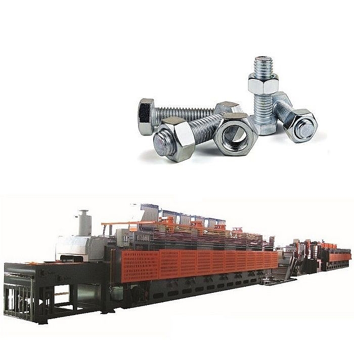 - Конвейерные печи для закалки/отпуска болтов, гаек и винтов самонарезающих применяются для светлой закалки, нитроцементации винтов самонарезающих, высокопрочных болтов, гайки, пружинной шайбы (гровёр), цепей, подшипников, оснастки и инструмента для металлообработки, гвоздей по бетону, механических деталей и другой метизной продукции из стали различной марки и химического состава.