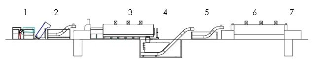 Проходная конвейерная печь для науглероживания, закалки/отпуска, нитроцементации изделий имеет модульную конструкцию, основные части которой представлены ниже.