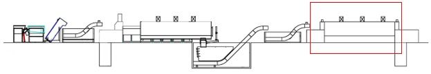 Состав узла: два бака для охлаждения в масле размером 2,200 (Ш) х 3,800 (Д) х 2,000 (В) мм. Ширина конвейерной ленты: 1,400 мм. Мощность двигателя конвейерной ленты: 380В х 50 Гц х 3 фазы х 1 л.с. Мощность водной системы охлаждения: 380В х 50 Гц х 3 фазы х 3 л.с. Система автоматического контроля температуры с датчиками оповещения и системы автоматического контроля охлаждения. Мощность воздуходувки: 380В х 50 Гц х 3 фазы х 3 л.с.