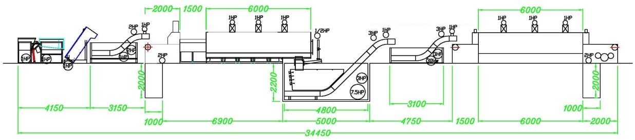 Чертеж линии оборудования (производительность ~ 150 тонн в месяц)