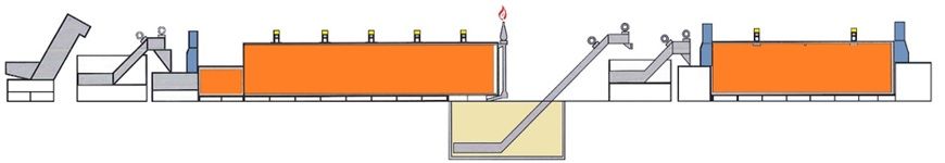 - Печи закалки/отпуска метизной продукции с газовым нагревом оборудованы газовыми горелками с радиальными трубами и системой рекуперации. Энергоносителем выступает природный газ (пропан).