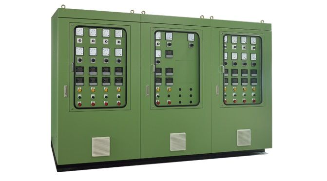 Интеграция контроля температуры и защитной атмосферы облегчает работу оператора. Адаптация SCR в управлении температурой обеспечивает точность температуры и времени термообработки. Шкаф собран из жаростойких панелей. Высококачественные компоненты используются для повышения надежности системы. Применение: для контроля температуры и атмосферы в печи. Контроллеры температуры х 11 шт. Термограф (12 точек). Электромагнитный переключетель для двигателя: 1 л.с. х 7 шт; 2 л.с. х 12 шт; 3 л.с. х 2 шт; 5 л.с. х 2 шт; 7.5 л.с. х 2 шт. Вольтметр: 0 ~ 400В. Индикаторная лампа и переключетель выбора режима. Система контроля сжигания газа.