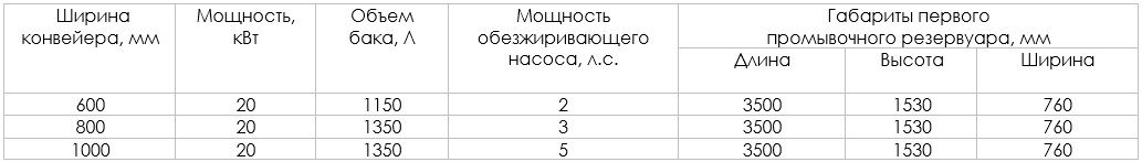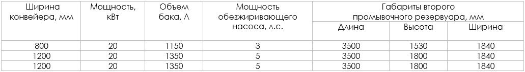 Передняя промывочная машина оборудована устройством предварительного нагрева, чтобы обеспечить достаточное количество горячей воды для промывки и обезжиривания изделий и экономии энергии. Резервуар оснащен ТЭНами с электрическим или газовым нагревом и датчиками контроля температуры. Бак также оснащен масло / водяным сепаратором и сушилкой для обдува изделий, очищенных от масла и грязи. Резервуар изготовлен из нерж. стали с теплоизоляционным покрытием. Конвейер из нерж. стали приводится в действие электродвигателем конвейера. Ширина стальной конвейерной ленты: 900 мм. Электрическая мощность двигателя водяного насоса: 380В х 50 Гц х 3 фазы х 3 л.с. Двигатель конвейера 3-х скоростной, мощность380В х 50 Гц х 3 фазы х 1 л.с. Мощность сушильной воздуходувки: 380В х 50 Гц х 3 фазы х 3 л.с. Мощность нагревательного элемента: 380В, 50 Гц х 3 фазы х 40 кВт.