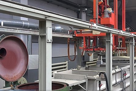 Оборудование для химического фосфатирования метизов представляет собой автоматическую линию барабанного типа/на подвесах для фосфатирования и предназначено для нанесения металлических и химических покрытий на метизы для придания им определенных свойств: защитных антикоррозийных, защитно-декоративных, декоративных, специальных (антифрикционных, для придания твердости, износостойкости). Принцип работы: после загрузки продукции в барабан, в автоматическом режиме данный барабан с помощью передвижной тележки перемещается из одной ванны в другую (с соляной кислотой, азотной кислотой, электролиз, нейтрализация) согласно заданной программе в компьютере управления, тем самым производит подготовку поверхности продукции к фосфатированию и производит фосфатирование. Краткий технологический процесс: химическое обезжиривание, горячая промывка, сушка, электрохимическое обезжиривание, каскадная промывка, активация, фосфатирование, сушка. В состав оборудования входит следующее основное оборудование: ванны, каркас оборудования, система водопроводов из ПВХ труб, кабельно-проводниковая продукция, барабаны, передвижные тележки, установленные на каркасе, компьютерная система управления, электрооборудование.