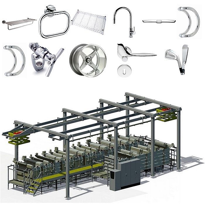 Оборудование для нанесения покрытий на металл и пластик на подвесах подходит для гальванизации и аннодирования изделий. Процесс гальванизации включает предварительную подготовку поверхности металла, гальванизацию - аннодирование, кислотное/щелочное цинкование, никелирование, хромирование, покрытие пластмасс и др. и последующие операции пассивации, промывки и сушки изделий в автоматическом режиме. Гальваническая линия применяется для гальванизации деталей автомобилей, мотоциклов, квадроциклов, велосипедов, сантехнических изделий, деталей освещения, мебельной фурнитуры, компьютерных компонентов, больший изделий и изделий специальной формы.