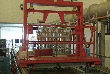 Сталь марки SUS 304. Загрузка/выгрузка деталей с одной стороны. Тележка с электромеханическим приводом. Возможность загрузки небольших партий деталей в ручную. Имеется устройство для передачи оснастки в зону загрузки и ее возврата в накопитель. Полуавтоматическое устройство для транспортировки оснастки по всем направлениям.