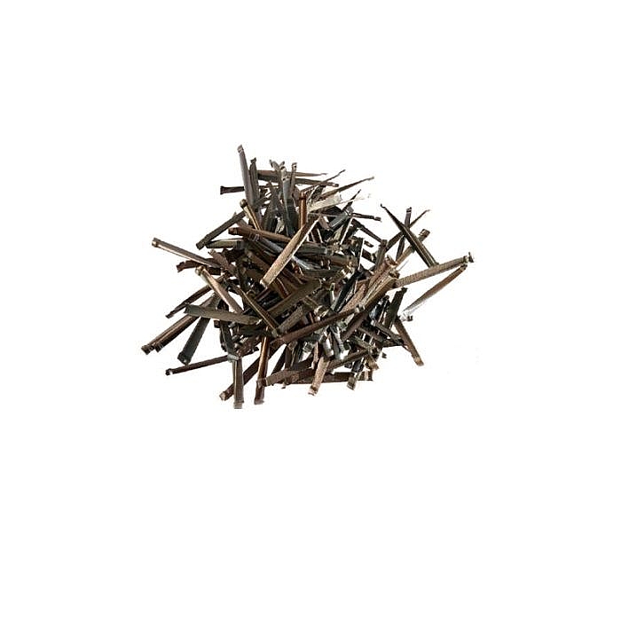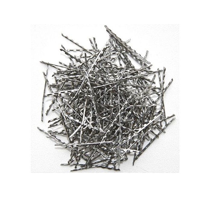 - Фибра представляет узкие полоски металла, длиной 50 мм. Сечение на срезе полоски 1 мм х 1 мм.