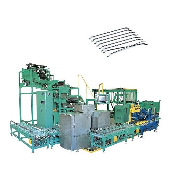 Оборудование для упаковки стальной фибры в гофротару состоит из подъемного-опрокидывающего механизма (UP-A-M885-CM) ёмкостью 800 кг; упаковочной машины автоматической с функцией электромагнитной ориентации фибры; устройства инспекции перевешанной коробки; конвейера для выгрузки коробки с продукцией в буферный участок; платформы для технического обслуживания.