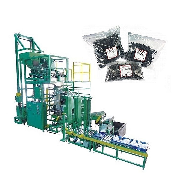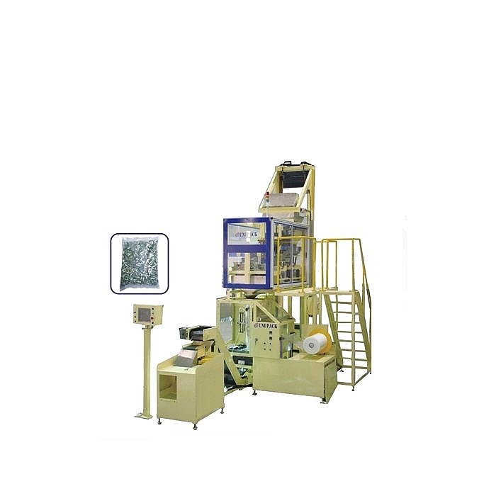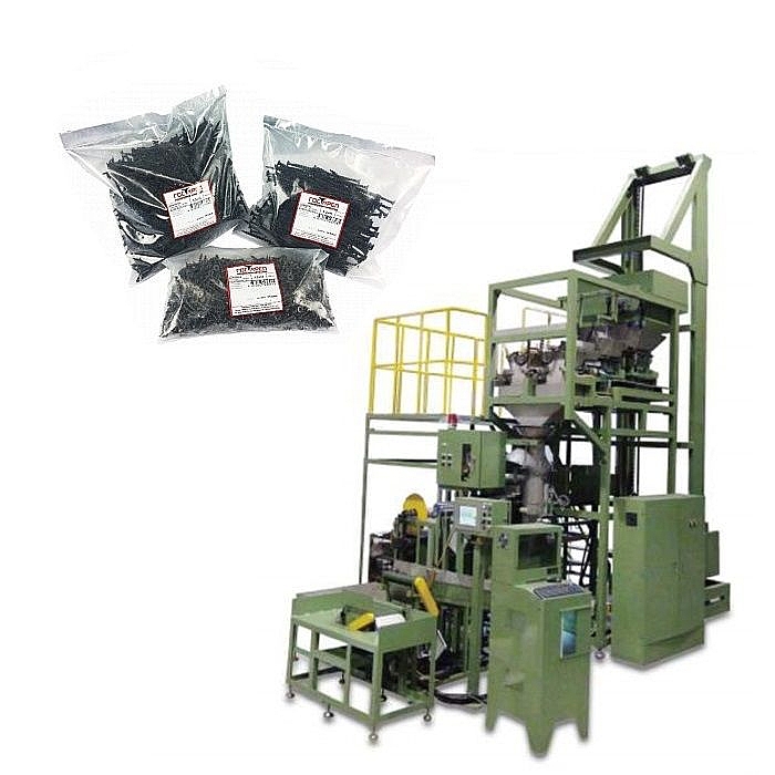 - Полиэтиленовая пленка в рулоне, автоматическое запечатывание нижней части пакета → отрез пакета по длине → упаковка/фасовка крепежа в пакеты → запечатывание пакета.
