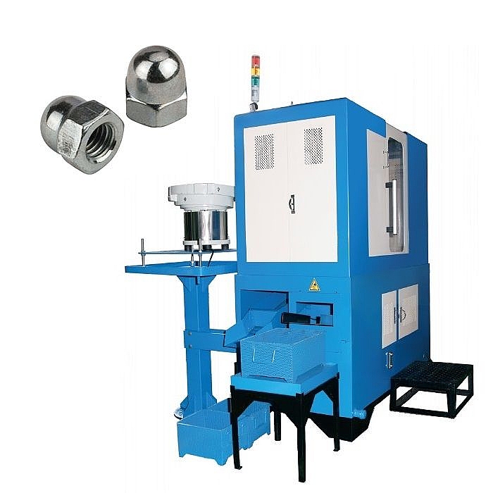 Резьбонарезное оборудование для глухих гаек является оборудованием более высокого класса, в котором вместо обычных моторов с традиционным подходом к управлению используются сервомоторы и человеко-машинный интерфейс. Такая конструкция обладает большей функциональностью, имеет больше преимуществ в управлении и эксплуатации. При накатке оси материала и метчика автоматически сцентрированы. Укрепленная структура обеспечивает более длительный срок службы, чем традиционный вертикальный резьбонарезной станок. Вследствие применения направляющего метчика станок с повышенной скоростью вращения может обеспечить точность глубины нарезки и не разрушает структуру гайки. Станок HRS также ведет опережающий контроль отклонений для сохранения высокого качества нарезаемой резьбы и проводит сравнительную инструментальную проверку. Станок прошел проверку пригодности по стандартам CE, его конструкция соответствует требованиям безопасности. Поддерживает режим накатки резьбы на высоких скоростях, нарезает резьбу на глухие, шестигранные гайки и гайки нестандартных размеров.