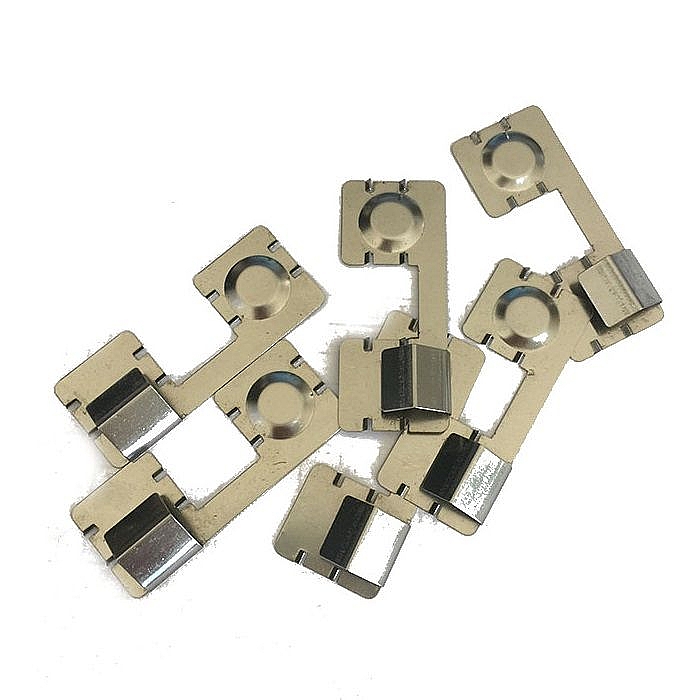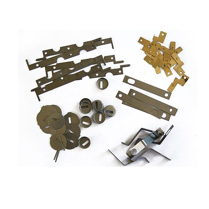 • Штампы с программируемым прогрессивным шагом и оснастка для холодной листовой штамповки шайбы, контактов и деталей изготовлены из стали марки SKD-11 или S45C. Матрицы и пуансоны - из стали марки SKD11 или HRC58.