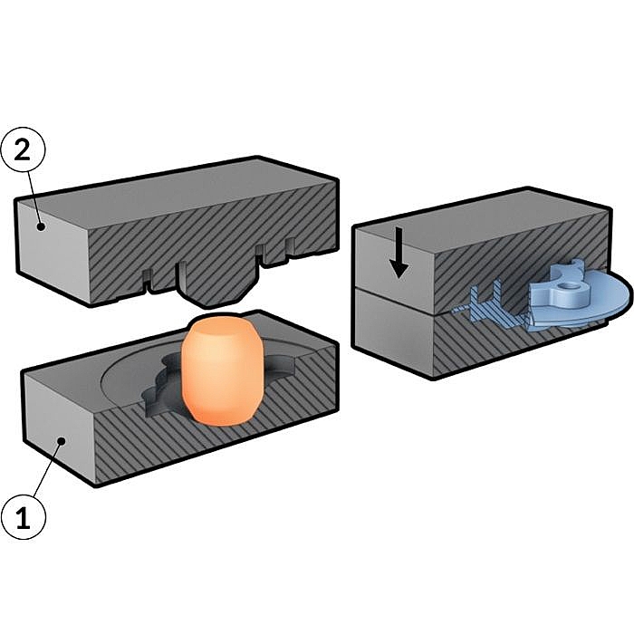 • Обжимные и чеканочные штампы, которые изменяют форму детали за счет перераспределения металла заготовки. К обжимным штампам, например, относятся штампы для высадки головок заклепок, а к чеканочным - штампы для образования рельефных рисунков на поверхности деталей.