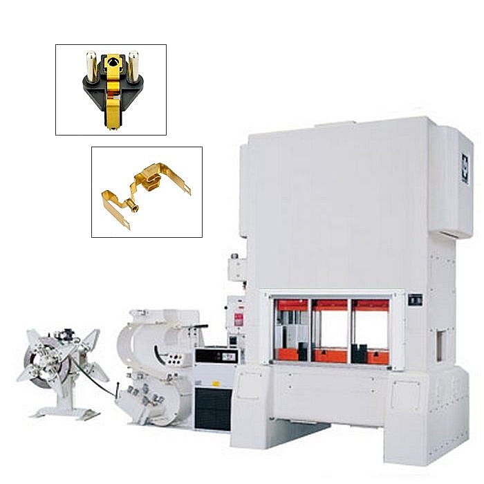 Пресс комплектуется размотчиком штрипса, зажимным приспособлением для точной подачи заготовки, правильным механизмом, узел штамповки - программируемым прогрессивным штампом, панель управления - ситемой мониторинга производственного процесса. ПЛК ф. Siemens.