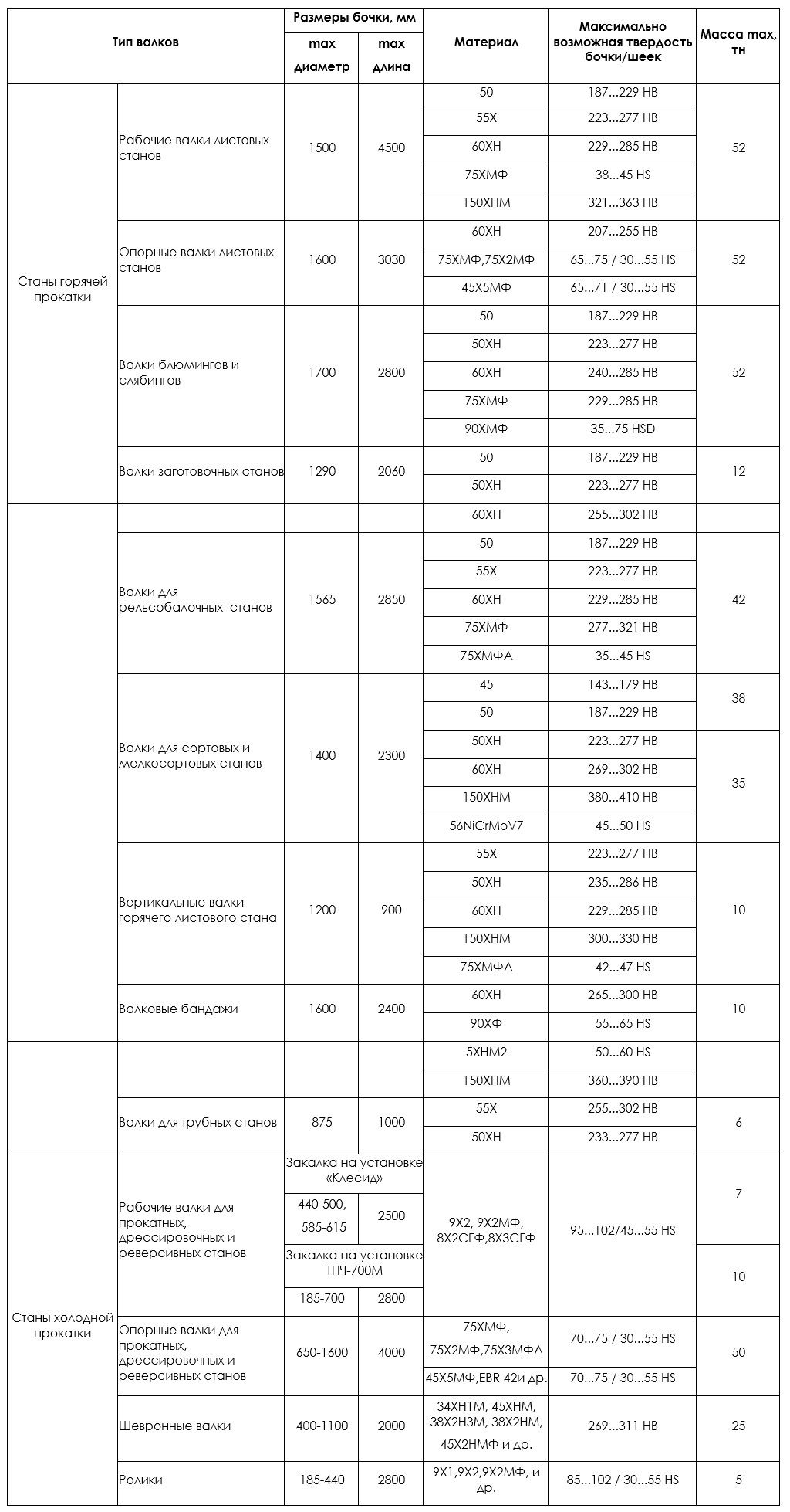 ВАЛКИ ДЛЯ СТАНОВ ХОЛОДНОЙ И ГОРЯЧЕЙ ПРОКАТКИ