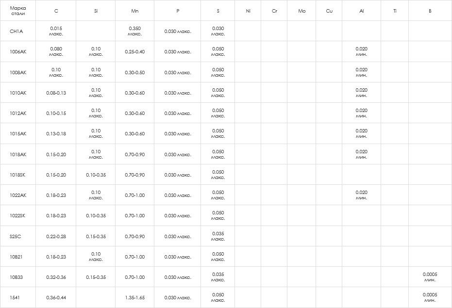 Проволока из легированной стали марки: 35ACR, 40ACR, SCM415H, SCM 435H, диаметром: 1.2 мм - 25.0 мм. Применяется для холодной высадки и объемной штамповки, производства крепежа повышенной прочности, автомобильного крепежа.