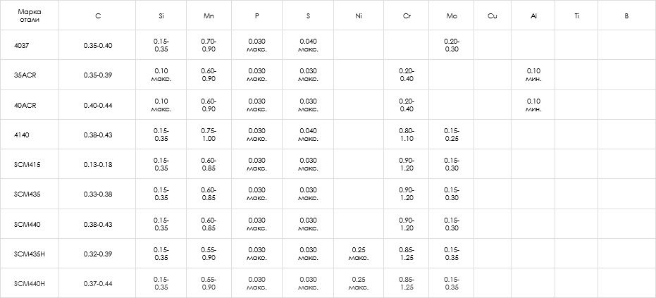 Сравнительная таблица стандартов JIS/AISI/DIN