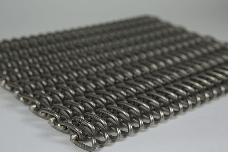 Свойства: прямолинейное движение ленты, гладкая поверхность ленты, позволяющая транспортировку изделий с малой контактной площадью, малая свободная поверхность ленты, позволяющая транспортировку мелких изделий, большая плотность ленты позволяет хорошее аккумулирование и сохранение тепла, долговечность этих лент. Стойкость конвейерной ленты с проволочным соединением составляет от 6 месяцев эксплуатации и более. Время необходимое на замену оснастки - составляет всего 2 часа. Конвейерная лента спроектирована таким образом чтобы продукция не застревала между ее звеньями, что исключает повреждение ленты и смешивание изделий от разных партий. Конвейерная лента идеально подходит для профессиональной термической обработки крепежа малых размеров М4-М12 и крупного крепежа размером от М20. Для обработки крепежа диаметром от М45 имеется возможность применения жаропрочной проволоки увеличенного диаметра вместо стандартного 2.0 х 2.5 мм. Лента имеет облегченный дизайн, что приводит к экономии электроэнергии на приведение ее в действие, к снижению себестоимости продукции.