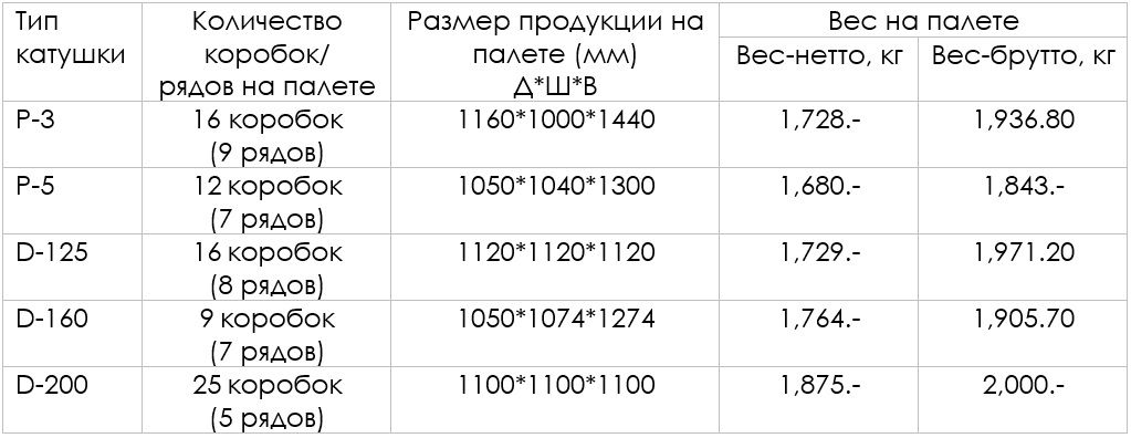 Вес продукции на палете