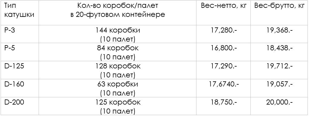 Вес продукции в 20-футовом контейнере