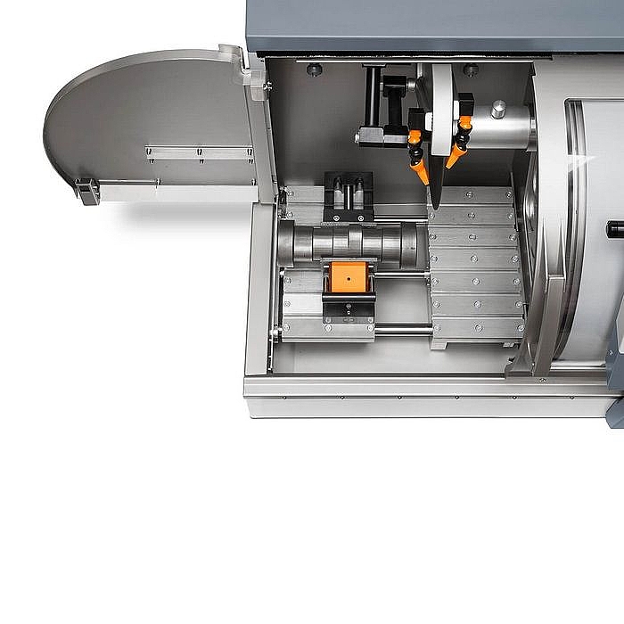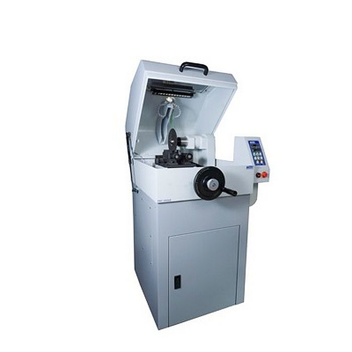Отрезной станок имеет устойчивую настольную конструкцию, исключает вибрацию во время работы. Оборудование поставляется вместе с устройствами для испытания на твердость по Виккерсу, может быть укомплектовано металлографическим микроскопом, измерительными приборами для вашего удобства и безопасности. Отрезные станки применяются, если образец слишком большой для последующей обработки на шлифовальном станке. Абразивные отрезные станки являются наиболее универсальными в области металлографии. Основным критерием для выбора станка является максимально возможный диаметр образца, который может разрезать станок. Станки также различаются режимами резки: как ручные (резка опусканием рукояти), так и автоматические (резка движением моторизированного столика) станки. Для резки образца с микронной точностью позиционирования реза, а так же резки сверхтвердых, хрупких материалов рекомендуется использование прецизионного станка, оснащенного алмазным диском.