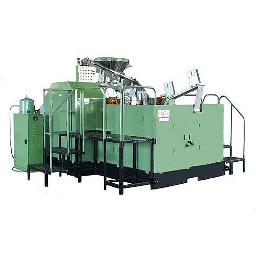 Оборудование позволяет производить точные фасонные детали сложной и уникальной геометрии. Процесс вторичной высадки осуществляется за два дополнительных удара, автомат работает в четырёх режимах подачи заготовки (в одном направлении, подача-А, подача-В, подача-С) в зависимости от требований по форме и длине готовых изделий. Достигается сокращение времени необходимого на вторичный процесс высадки, высокая производительность и возможность изготовления изделий с неограниченной длиной. Высокая стойкость и срок службы инструмента. Оборудование имеет патент. Есть возможность комплектации в полузащитном кожухе и в защитном кожухе.