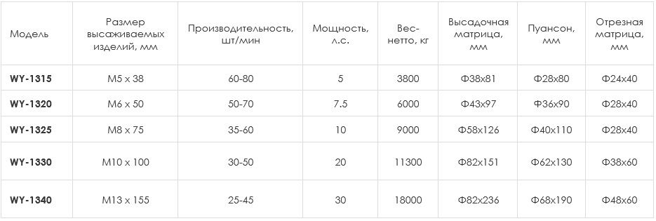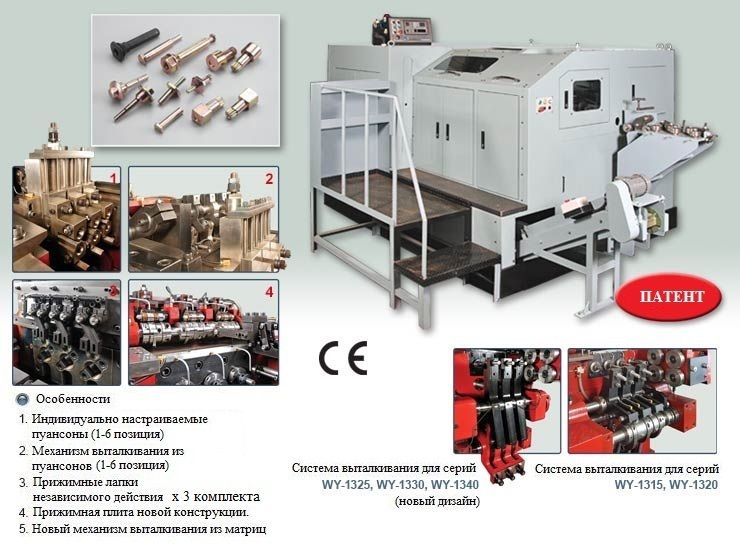 - 3-х позиционные, 6-ти ударные холодновысадочные станки серии WY предназначены для высадки сложных деталей различной формы.