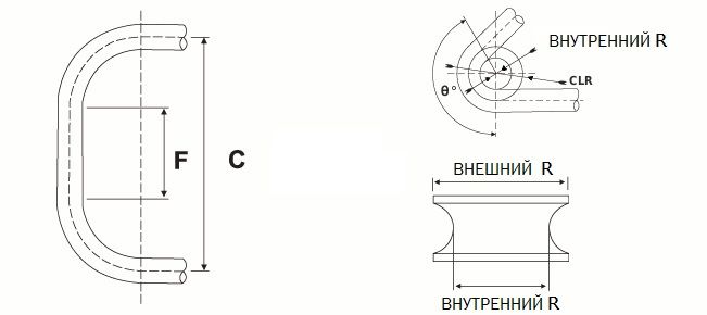 Мы имеем возможность разрабатывать оборудование для холодной гибки труб согласно чертежам готовых изделий и технических требований. Необходимо уточнить материал заготовки - сталь, нержавеющая сталь, алюминий, другое; указать - внешний диаметр, мм; толщину стенки (Т); максимальный угол гиба; минимальный центральный радиус гиба; ширину (В); высоту (D); указать характеристики трубы (если размеры стандартны, необходимо выслать чертежи или примеры); труба - круглая, прямоугольная, овальная, квадратная); направление гиба - горизонтальное, вертикальное); длина между гибами (DBB): F - минимальная длина прямой линии мжду гибами, C - длина между центральными точками; тип дорна - обычный дорн, шариковый дорн, без дорна; складкодержатель - да, нет.