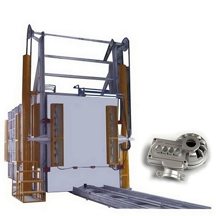 - Садочные печи с выдвижным роликовым подом применяются для термоупрочнения деталей из алюминиевых сплавов Т4, Т6, литых под давлением.