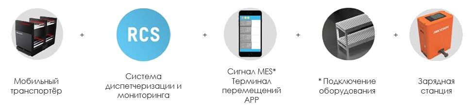 - RCS-1000. Система управления логистикой мобильного транспортёра поддерживает разнообразные способы управления, включающие в себя точку подключения веб-службы, звуковой сигнал, приложение для мобильного телефона.
